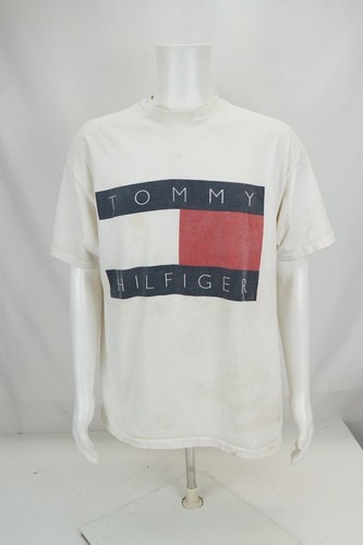 Vintage Tommy Hilfiger Big Flag White Made In Usa Shirt Men Size Large Ebay